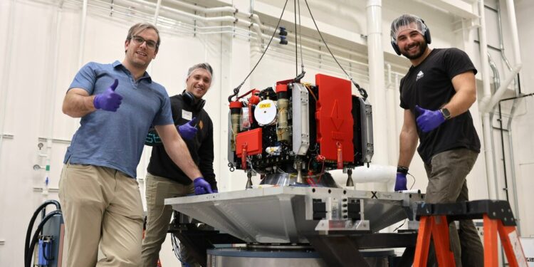 AstroForge’s second robotic spacecraft, known as Odin, is bundled right into a SpaceX Falcon 9 rocket that will even launch a privately constructed moon lander and a NASA-operated lunar orbiter as quickly as Wednesday from Florida. About 45 minutes after the launch, Odin will separate and start its solo journey into deep house, whereas the moon missions — the Athena lander from Intuitive Machines and NASA’s Lunar Trailblazer — take off on their very own separate journeys.