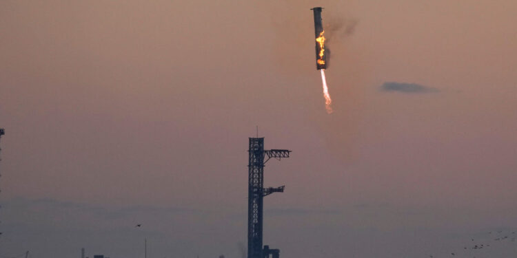 THE LAUNCH was exceptional: a booster rocket with twice the facility of the Apollo programme’s Saturn V lancing into the early-morning sky on a decent, shiny column of blue-tinged flame. However that marvel has been seen 4 occasions earlier than. It was the touchdown of the booster stage of SpaceX’s fifth Starship check flight which was really extraordinary.