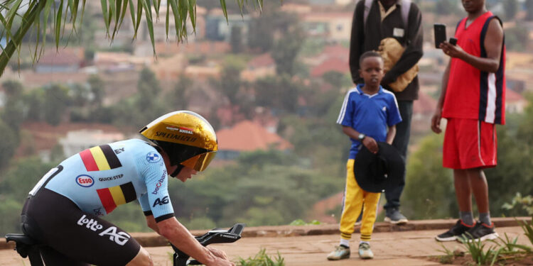 Remco Evenepoel of Belgium gained a 3rd successive particular person time-trial title on the Highway Biking World Championships in Rwanda on Sunday, suging previous Tadej Pogacar within the race’s remaining stretch because the Tour de France winner narrowly missed out on a medal.