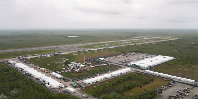 The ability, which has tents and caged cells for as much as 5,000 immigration detainees, is housed at a not often used and principally deserted airfield positioned throughout the wetlands of the Huge Cypress Nationwide Protect.