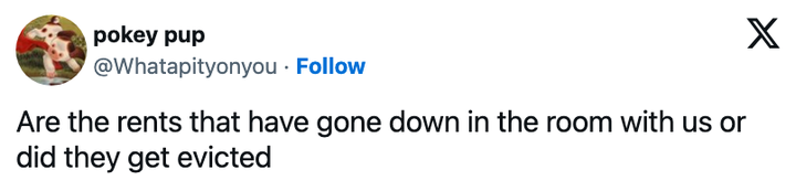 “Are the rents which have gone down within the room with us or did they get evicted,” this individual joked.