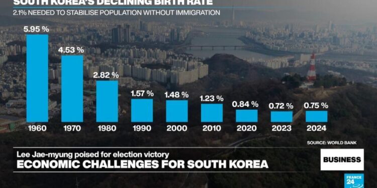 With voters turning out in document numbers, South Korea elected liberal chief Lee Jae-myung to steer the nation left in turmoil by the transient imposition of martial legislation by Yoon Suk-yeol. The nation of 51 million folks has the world’s lowest beginning charge and is now a “super-aged” society. South Korea noticed forecasts for its progress downgraded… because the OECD revised down progress prospects for many of the world amid Donald Trump’s commerce conflict.