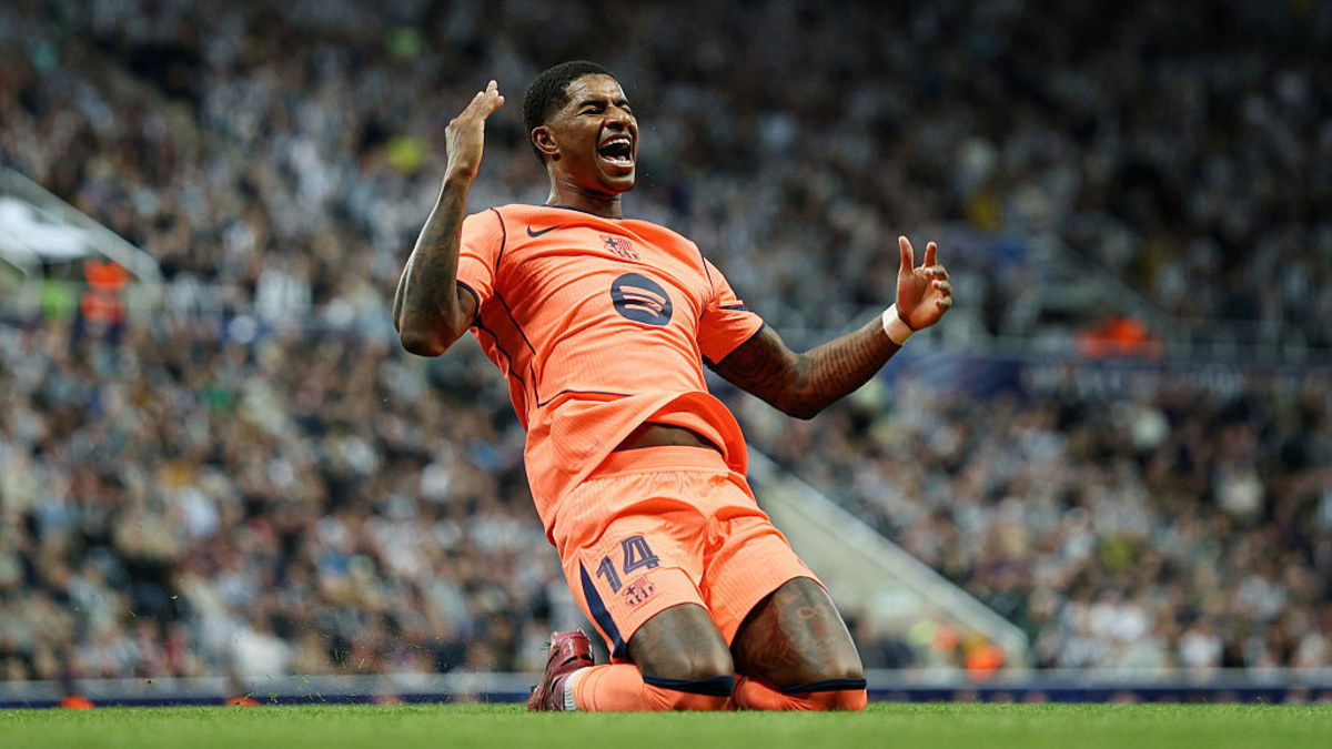 Marcus Rashford of Barcelona celebrates scoring. Getty