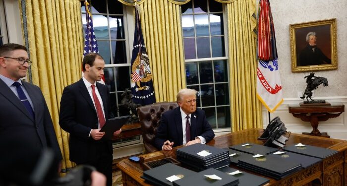 Donald Trump ushered in a new era of disruption for global trade and took aggressive steps to spice up power manufacturing and curb immigration hours after being sworn in for his second presidency.