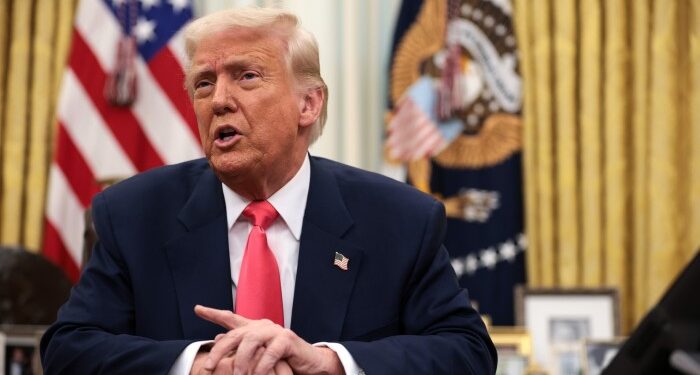 The abrupt coverage shift got here after Trump doubled down on his tariffs plan in his deal with to Congress this week, saying: “There will likely be a little bit disturbance, however we’re OK with that.”