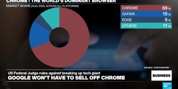 US Federal Choose Amit Mehta dominated on Tuesday that Google didn’t should dump its signature Chrome web browser or its Android working system. This follows a earlier ruling that the corporate had illegally maintained a monopoly on search engines like google. Traders breathed a sigh of aid, since search accounts for greater than half of the tech large’s income. Additionally on this version: French households are saving at file ranges over issues about political instability.